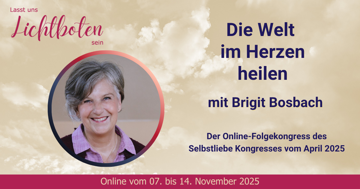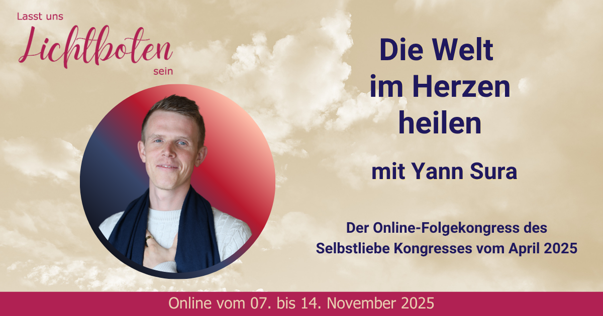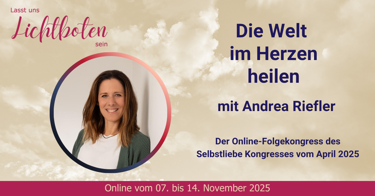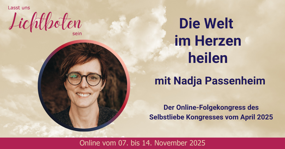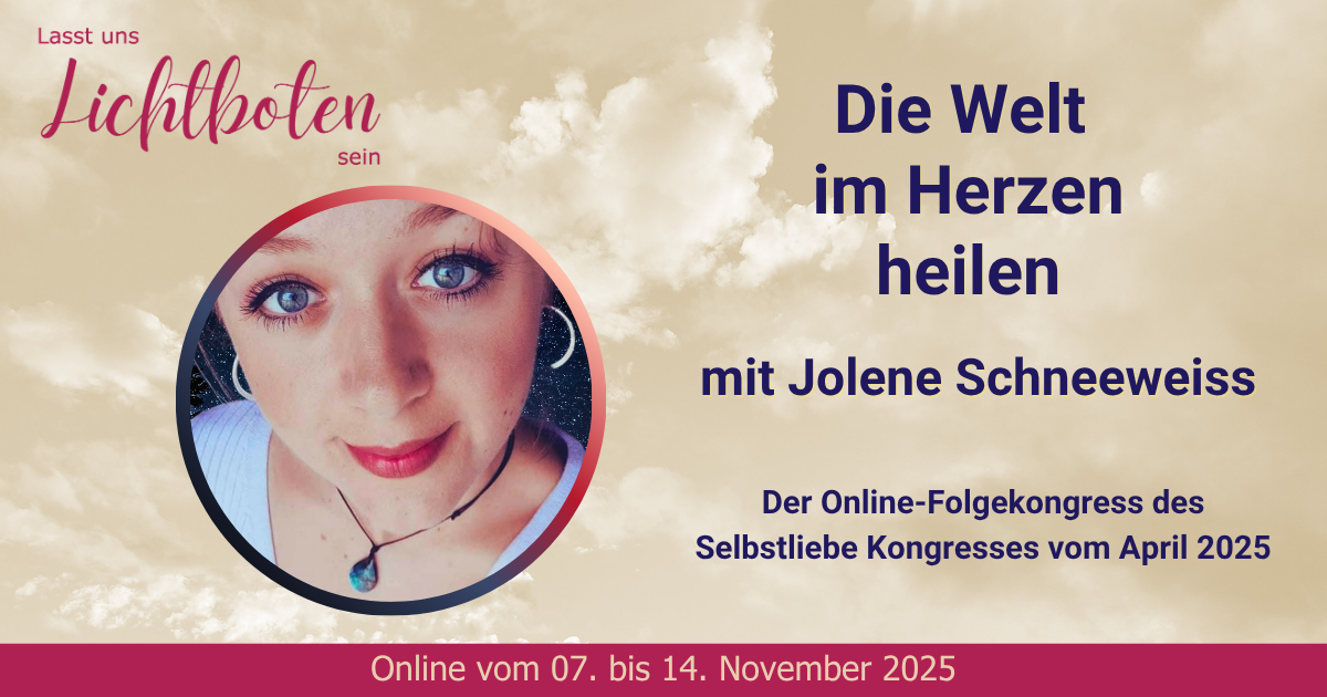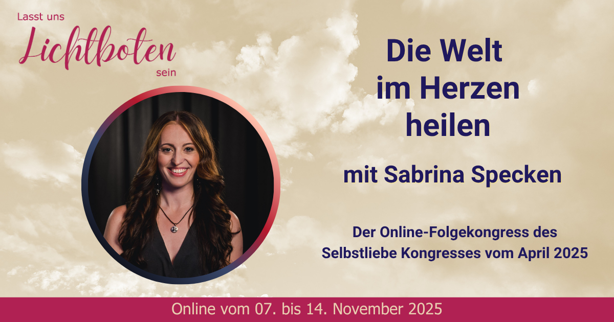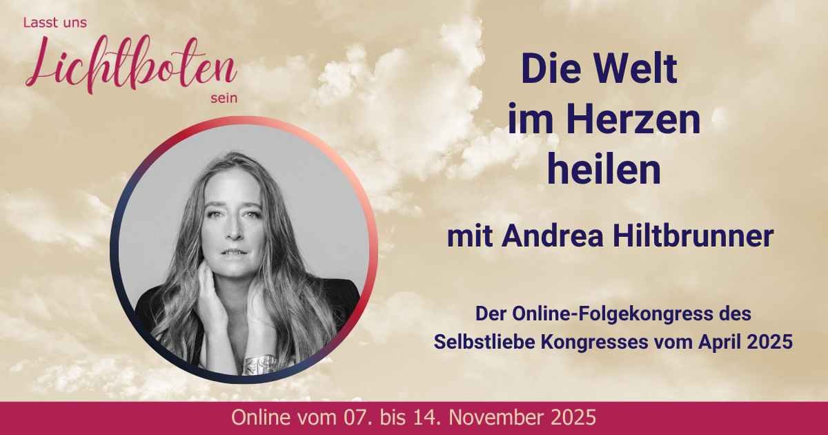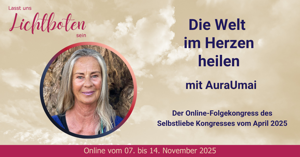 Der kostenlose Online-Kongress „Die Welt im Herzen heilen – Wie Selbstliebe äußere Wirkung entfaltet“ (7.–14. November 2025) lädt dich ein, wieder mit deinem Herzen, deiner Wahrheit und deiner inneren Kraft in Verbindung zu kommen.