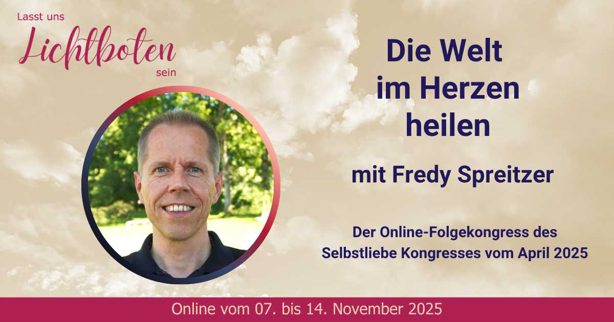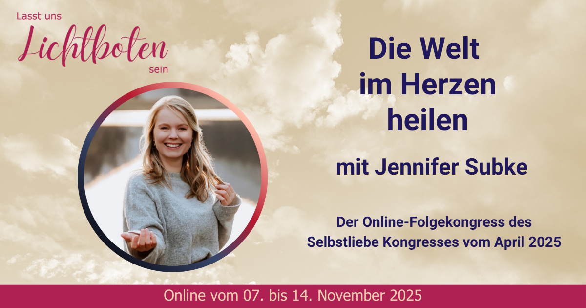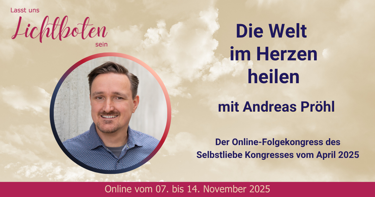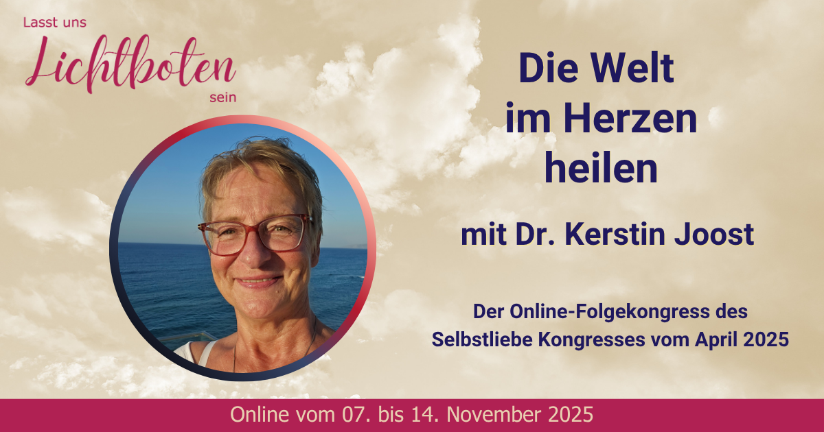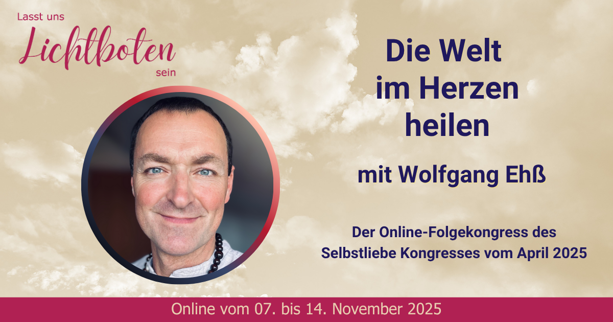 Der kostenlose Online-Kongress „Die Welt im Herzen heilen – Wie Selbstliebe äußere Wirkung entfaltet“ (7.–14. November 2025) lädt dich ein, den Wandel in dir zu beginnen.